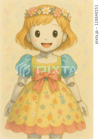 可愛裝置女孩的花裙,微笑的書 | 童話風格人工智慧角色彩設計