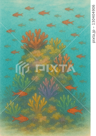 海底門與魚群水彩畫-熱珊瑚礁下的生態奇蹟