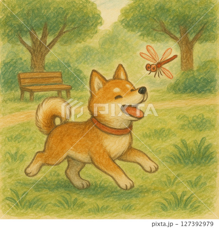 柴犬追蜻蜓|しばいぬとトンボの追いかけっこ × 可愛插畫