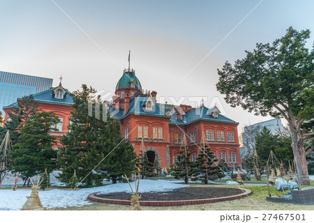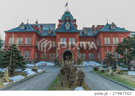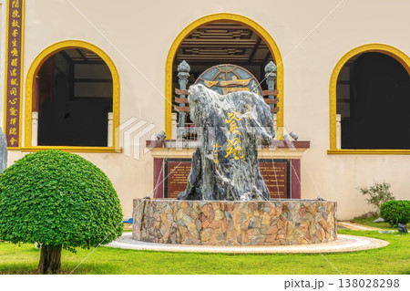 Neatly Pruned Ornamental Trees in Front of Traditional Asian Arc