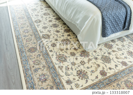 Traditional Arabic woven rug in beautiful bedroom.