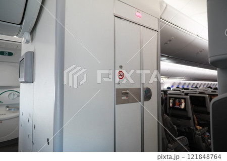 Inside View of a Modern Train Coach Featuring Comfortable Blue Fabric Seats with Clean Covers and Ample Space for Passengers and Their Baggage, Ideal for Long Journeys