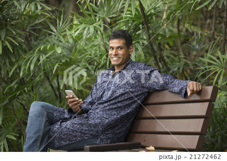 an indian man in a green kurta with yellow trim red turban and brown shoes wearing traditional attire