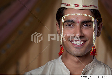 Portrait of a Maharashtrian man holding a Ganesh idol