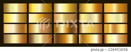 Gold gradients set. Metallic golden colour gradation vector backgrounds collection