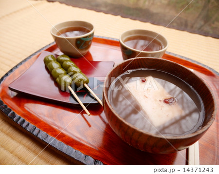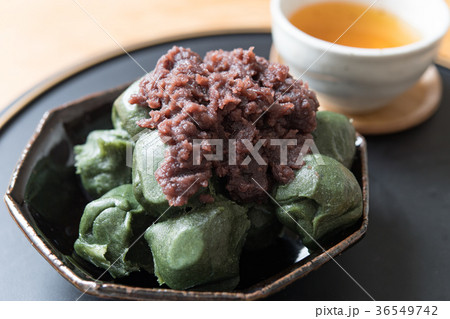 3個艾葉餃子,配上豆沙、日式茶和日式點心