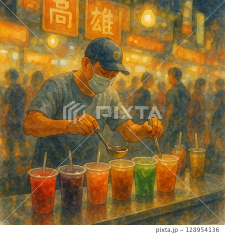 台灣夜市飲水杯繪畫|彩色飲料販賣製作影片|高雄夜市風格水彩畫