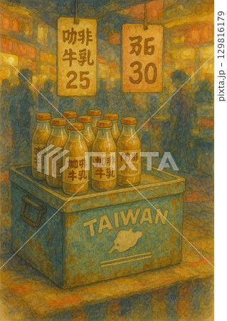 台灣夜市玻璃瓶與牛肉包|復古風手繪水彩畫