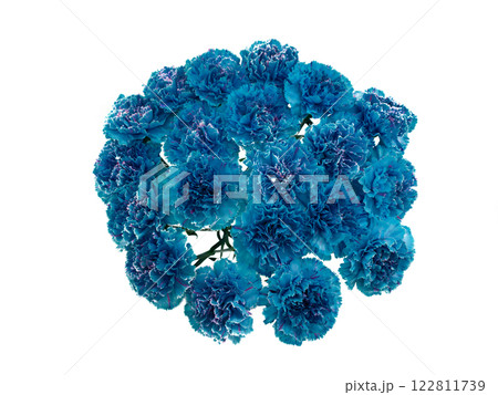 藍色背景。白色滿天星花的特寫照片。學名是滿天星。