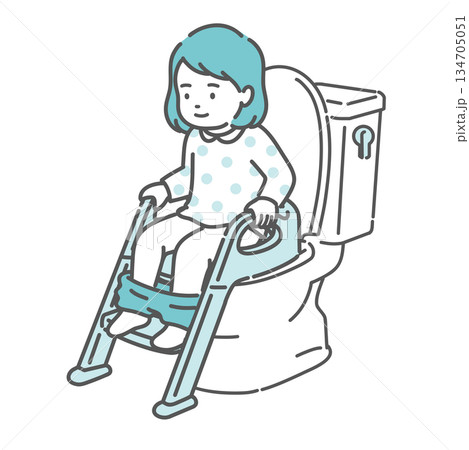 圖:一名女孩使用增高座椅和階梯進行如廁訓練(如廁訓練,成功)