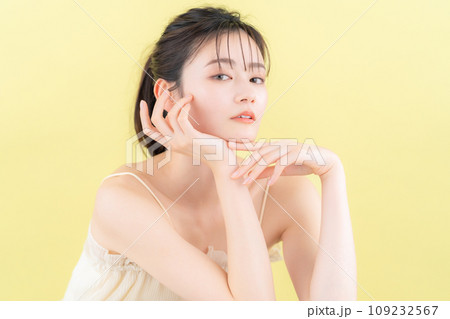 做皮膚護理的年輕女性,背部發黃