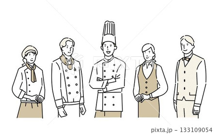餐廳廚師、主廚、糕點師、服務生製服-服裝-團隊插畫素材