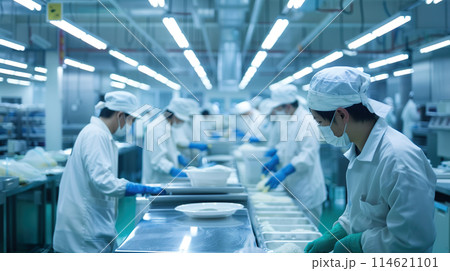 食品加工產業的男女廚師(食品衛生、食品工廠、衛生服飾、衛生管理)