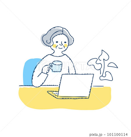 在筆記本電腦上工作的高級女性