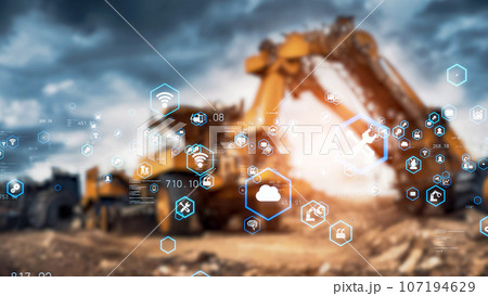 Construction machinery including excavator, truck, and concrete mixer on a plain background for educational purposes