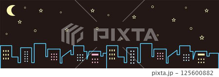 橫幅框架城市景觀城市建築夜空星星月亮剪影背景設計插畫素材
