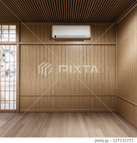 Empty room,Clean japanese traditional style wooden design minimalist room interior, 3D rendering