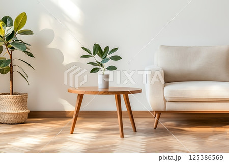 Modern living room interior design with stylish sofa and minimalist decor elements