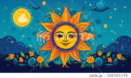 手绘卡通可爱的太阳插画