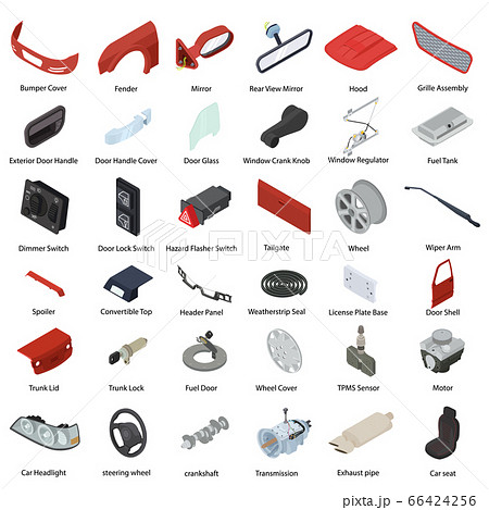 Car parts icons set, isometric style
