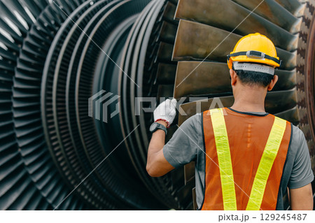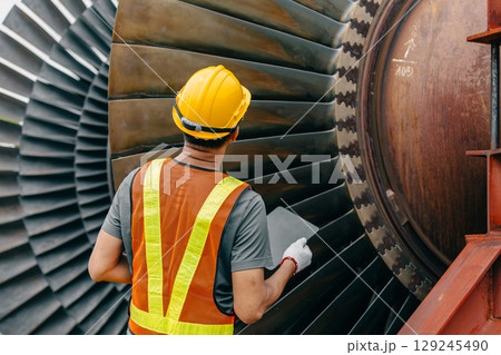 Professional Asian engineer male working service power plant turbine fan blade electrical generator