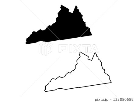 Two vector illustrations display the outline and solid black silhouette of the state of Virginia