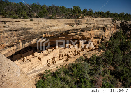 Famous Cliff Palace ruins in Mesa Verde National Park, Colorado. The ancient Ancestral Puebloan cliff dwellings are built into a massive sandstone alcove