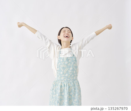 穿著圍裙的女子,白色背景