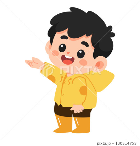 Illustration of Boy Wearing Raincoat with Arm Extended