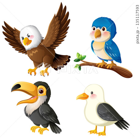 Colorful Cartoon Birds in Various Poses and Expressions