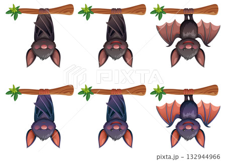 Cartoon Bats Hanging Upside Down on Tree Branches