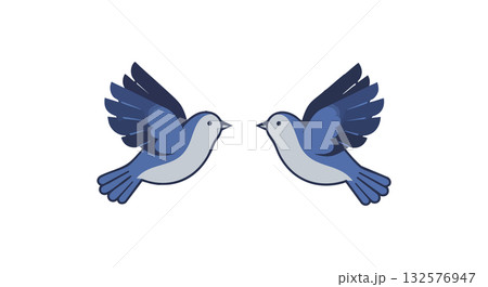Two blue birds flying facing each other vector illustration with spread wings and simple design