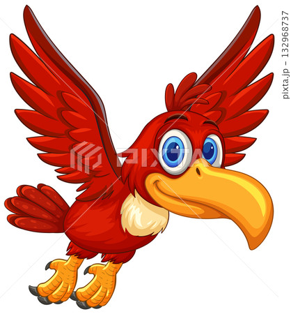 Cartoon Red Bird Spreading Wings with Happy Expression