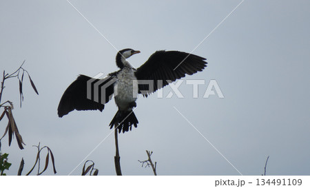 4k closeup of large bird opening wings on tree branch