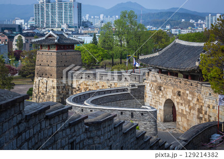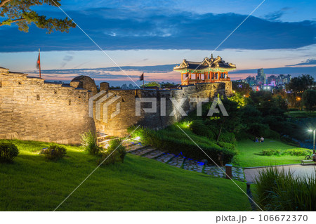 Banghwasuryujeong or Dongbukgangnu Pavilion of Hwaseong Fortress in Suwon, UNESCO world heritage in South Korea