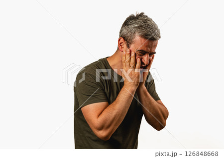Distressed child with hands on face expressing emotional overload and panic. Concept of stress, meltdown, and loss of control in childhood. Dramatic red background adds intensity.