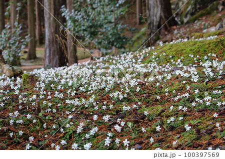 早春在森林中綻放的雪割一枝