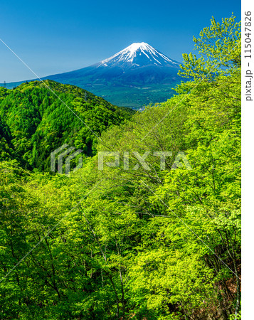 禦坂嶺的富士山和亮黃色的森林