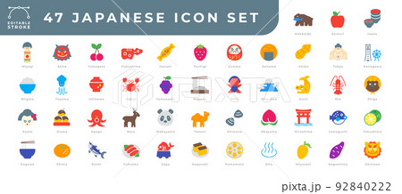 插圖素材:日本彩色圖標圖案(線寬可更改)
