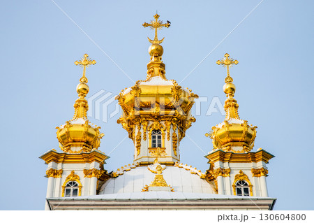 The domes of the Church of the Holy Apostles Peter and Paul, Peterhof, Russia