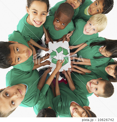 Children holding recycle sign