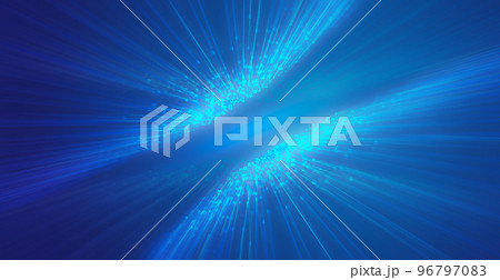 發光藍色粒子快速前進消失在深藍色背景上