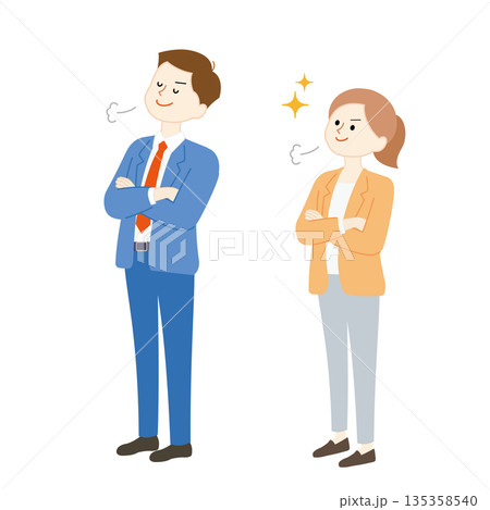 商業場景插圖,描繪了一位驕傲自大的男士和一位傲慢的女士。