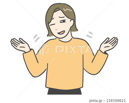 一位身著休閒服的年輕女子嘆了口氣,笑了起來(上身)