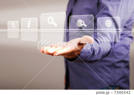 adult man hand touching virtual interface