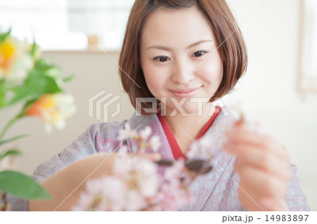 用竹子裝飾的南天竹、鬱金香和玫瑰等新年裝飾品