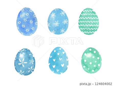 用水彩畫的復活節彩蛋,雞蛋,藍色,淺藍色,綠色