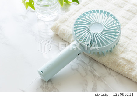 旋轉風扇的水彩插圖(夏季,涼爽,節能圖像)