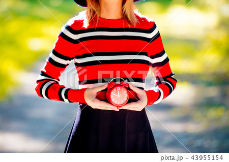 A red-haired woman in a yellow coat holds a yellow suitcase and walks her dog jack russell terrier along the track along the forest in autumn.