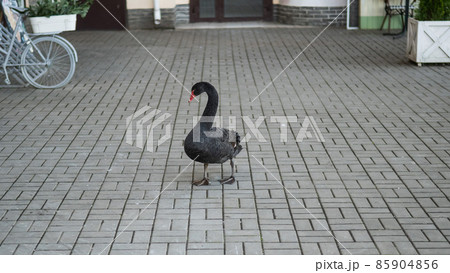 A black cat walks along a wooden fence. Pet on a walk in the park in autumn. He looks straight ahead. He has yellow eyes. Autumn outside, yellow foliage on the background.